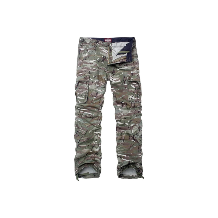 - Zipper fly, multi-pockets (2 front slash, 2 rear button down, 4 roomy side cargos)