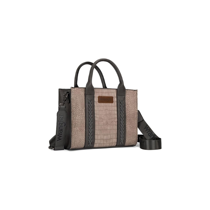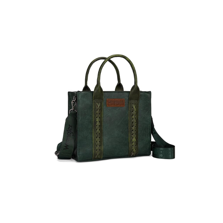 - Whipstitch design adds a touch of western flair to this Wrangler tote, a special combination of wildness and elegance.